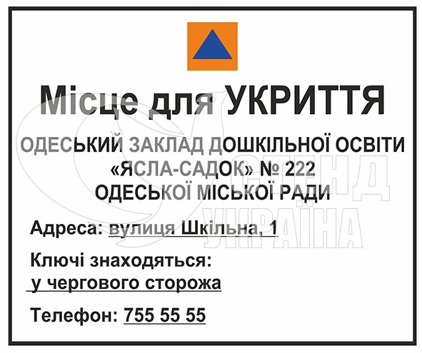 Місце для укриття табличка пластикова- купити на stend-ukraine.com