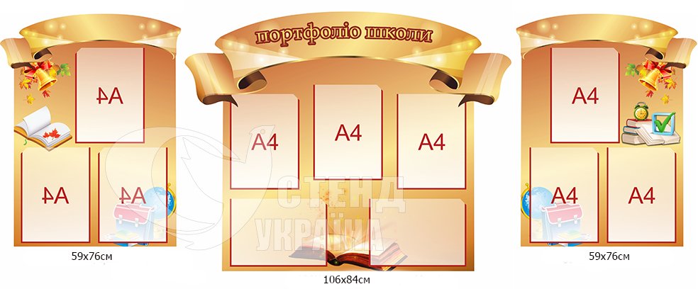 З чого виготовлений стенд? Стенди виготовляємо з пластика ПВХ 3мм, зображення фотографічної якості нанесено на плівці з клейкою основою. “Кишені” – з прозорого пластика ПВХ 0,4 мм.