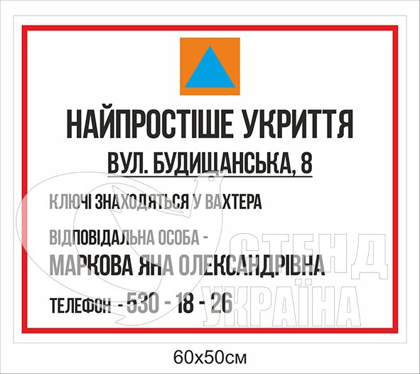 Найпростіше укриття табличка на стіну купити на stend–ukraine.com