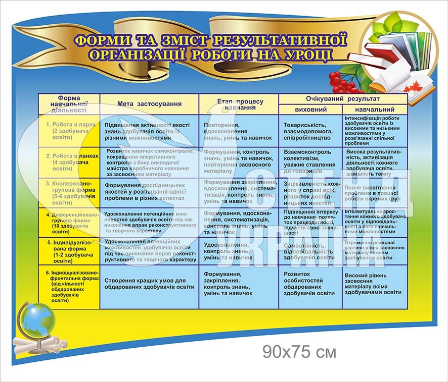 Стенд «Форми та зміст результативної організації роботи на уроці» – купити на stend-ukraine.com