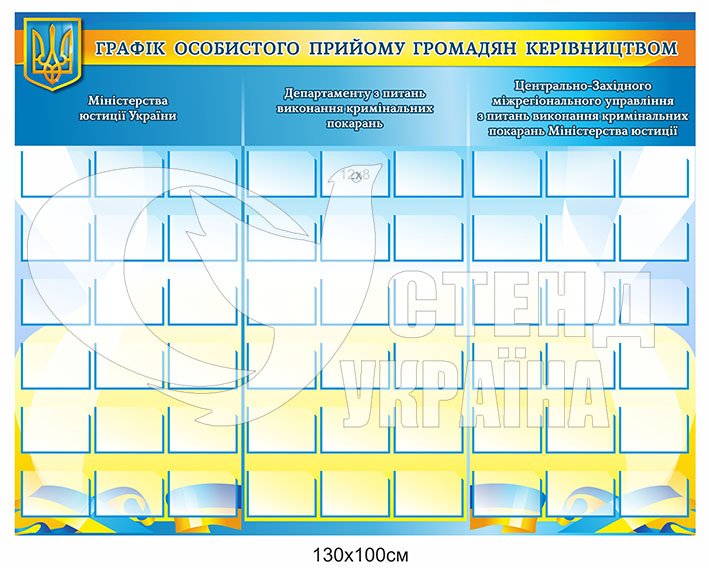 З чого виготовлений стенд? Стенди виготовляємо з пластика ПВХ 3мм, зображення фотографічної якості нанесено на плівці з клейкою основою. “Кишені” – з прозорого пластика ПВХ 0,4 мм.