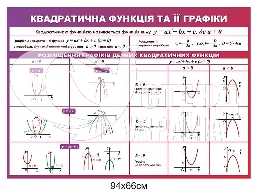 Стенд “Квадратична функція та її графіки” – купити на stend-ukraine.com