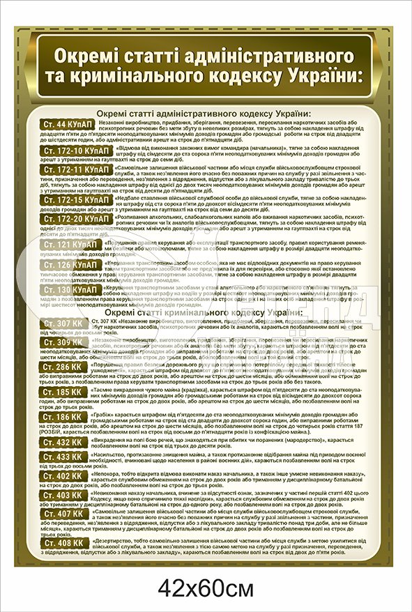 Стенд “Окремі статті адміністративного та кримінального кодексу України”- купити на stend-ukraine.com