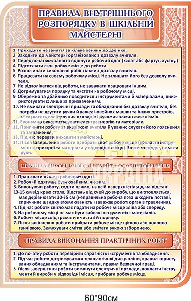 Стенд “Правила внутрішнього розпорядку в шкільній майстерні” – купити на stend-ukraine.com