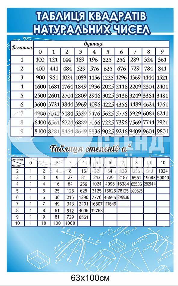 Стенд “Таблиця квадратів натуральних чисел” – купити на stend-ukraine.com