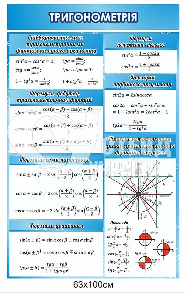 Стенд “Тригонометрія” – купити на stend-ukraine.com