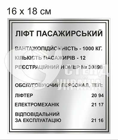 Табличка ліфт пасажирський – купити на stend-ukraine.com